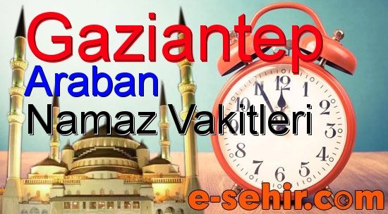 Gaziantep Araban için namaz vakti ezanı saat kaçta okunuyor, bugün için diyanet namaz saatleri, yarınki sabah namazı ezanı kaçta ve önümüzdeki 30 günlük tüm 5 vakit namaz zamanı bilgilerini aşağıdaki bir aylık namaz vakitleri çizelgemizden öğrenebilirsiniz.