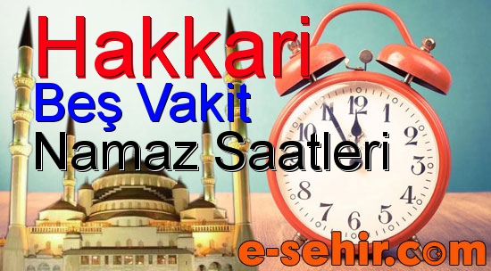 Hakkari için namaz vakti ezanı saat kaçta okunuyor, bugün için diyanet namaz saatleri, yarınki sabah namazı ezanı kaçta ve önümüzdeki 30 günlük tüm 5 vakit namaz zamanı bilgilerini aşağıdaki bir aylık namaz vakitleri çizelgemizden öğrenebilirsiniz.
