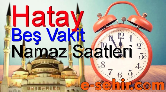 Hatay için namaz vakti ezanı saat kaçta okunuyor, bugün için diyanet namaz saatleri, yarınki sabah namazı ezanı kaçta ve önümüzdeki 30 günlük tüm 5 vakit namaz zamanı bilgilerini aşağıdaki bir aylık namaz vakitleri çizelgemizden öğrenebilirsiniz.
