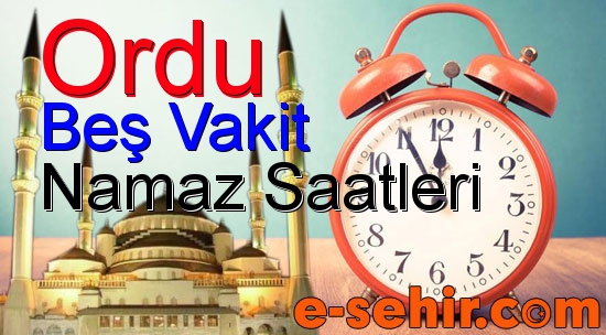 Ordu için namaz vakti ezanı saat kaçta okunuyor, bugün için diyanet namaz saatleri, yarınki sabah namazı ezanı kaçta ve önümüzdeki 30 günlük tüm 5 vakit namaz zamanı bilgilerini aşağıdaki bir aylık namaz vakitleri çizelgemizden öğrenebilirsiniz.