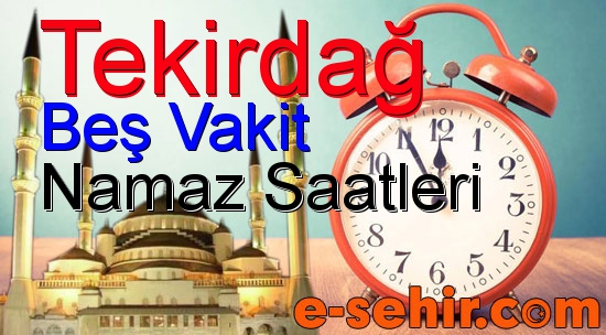 Tekirdağ için namaz vakti ezanı saat kaçta okunuyor, bugün için diyanet namaz saatleri, yarınki sabah namazı ezanı kaçta ve önümüzdeki 30 günlük tüm 5 vakit namaz zamanı bilgilerini aşağıdaki bir aylık namaz vakitleri çizelgemizden öğrenebilirsiniz.
