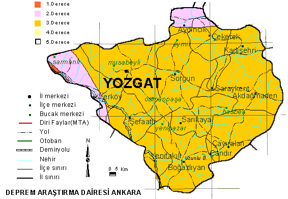 Yozgat Deprem Haritası, Yozgat Deprem Fay Hattı Haritası