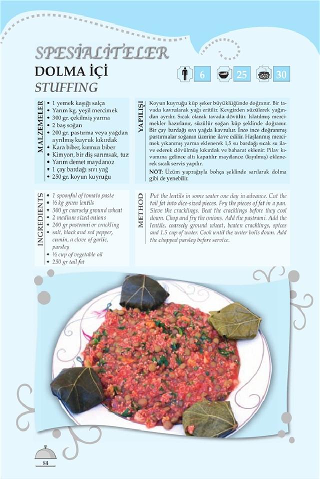 NOT: Üzüm yaprağıyla bohça şeklinde sarılarak dolma