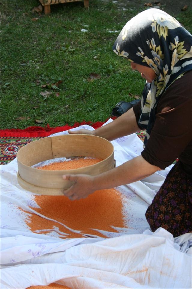 Tarhana çorbası kışlık yiyecek olarak yapılıyor. Köyde muhacir ve yerli tarhana olarak iki çeşit tarhana yapılıyor Muhacir tarhanası; mayalanan yoğurdun içine soğan rendeleniyor malzemesine göre yumurta kırılıyor karabiber acı biber ve tarhana kokusu adı verilen baharat karışımı yoğurda katılıyor . Nane konduktan sonra alabildiği kadar unla hamur haline getiriliyor. Muhacir tarhanası yaş olarak tüketiliyor , kavanoz veya plastik bir torbanın içinde buzdolabında saklanıyor. Muhacir tarhanasını pişirmek için tarhana suda bekletilerek eziliyor tencerede tereyağı ve nane kavrularak üzerine tarhanası kaynayıncaya kadar karıştırılıyor. Kurutulmadan saklandığı için kuru tarhana kadar çok yapılmıyor kısa sürede tüketiliyor. Yerli tarhana olarak bilinen tarhananın içine yoğurt soğan ve domates rendeleniyor, karabiber, pul biber nane ve ekmek mayası konduktan sonra unla hamur haline getiriliyor. Mayasının gelmesi için sıcak bir yere konarak bekletiliyor. Mayası geldikten sonra tekrar yoğrularak bekletiliyor bu işlem birkaç kez daha tekrarlandıktan sonra parçalara bölünerek temiz ve kuru bezlerin üzerine seriliyor güneşte kurutuluyor tam olarak kuruması beklemeden göze adı verilen elekten geçiriliyor, günümüzde gözelerin yerine mutfak robotları kullanılmaktadır. Kurumuş tarhanalar bez torbalara konularak saklanıyor. Yerli tarhanayı pişirmek için suda bekletiliyor tereyağı ve nane tencerede kavrulduktan sonra tarhanası ekleniyor kaynayana kadar karıştırılarak pişiriliyor. Tarhana çorbası yapımı kolay olduğundan her öğün pişiriliyor. Özellikle yaz mevsiminde bütün gün tarlada çalışan kadınlar akşam yemeği için kolay yapılan yiyecekleri tercih ediyorlar.